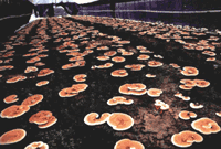 直井幸雄氏が成功させた自然原木栽培は、原木の選定から収穫した霊芝の保存法に 至るまで、非常に手間がかかります。