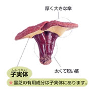これは霊芝の有用成分のほとんどが傘の裏の黄色い部分 (子実体)にあるため、直井氏が30年かけて実現させた 霊芝の形なのです。